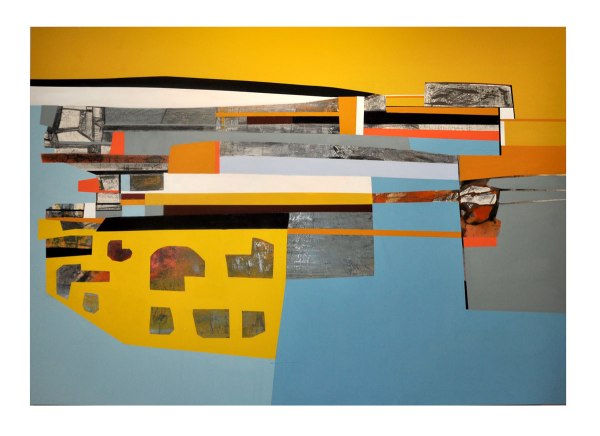 Sei collage lasciati in incubazione a lungo, ripresi in seguito per aggiungere e sottrarre parti finché non si sono completati, in una sintesi in bianco e nero trasferita con diversi strati di acquaforte/acquatinta, per ottenere una patina scura che ricopre la scena di un velo onirico.